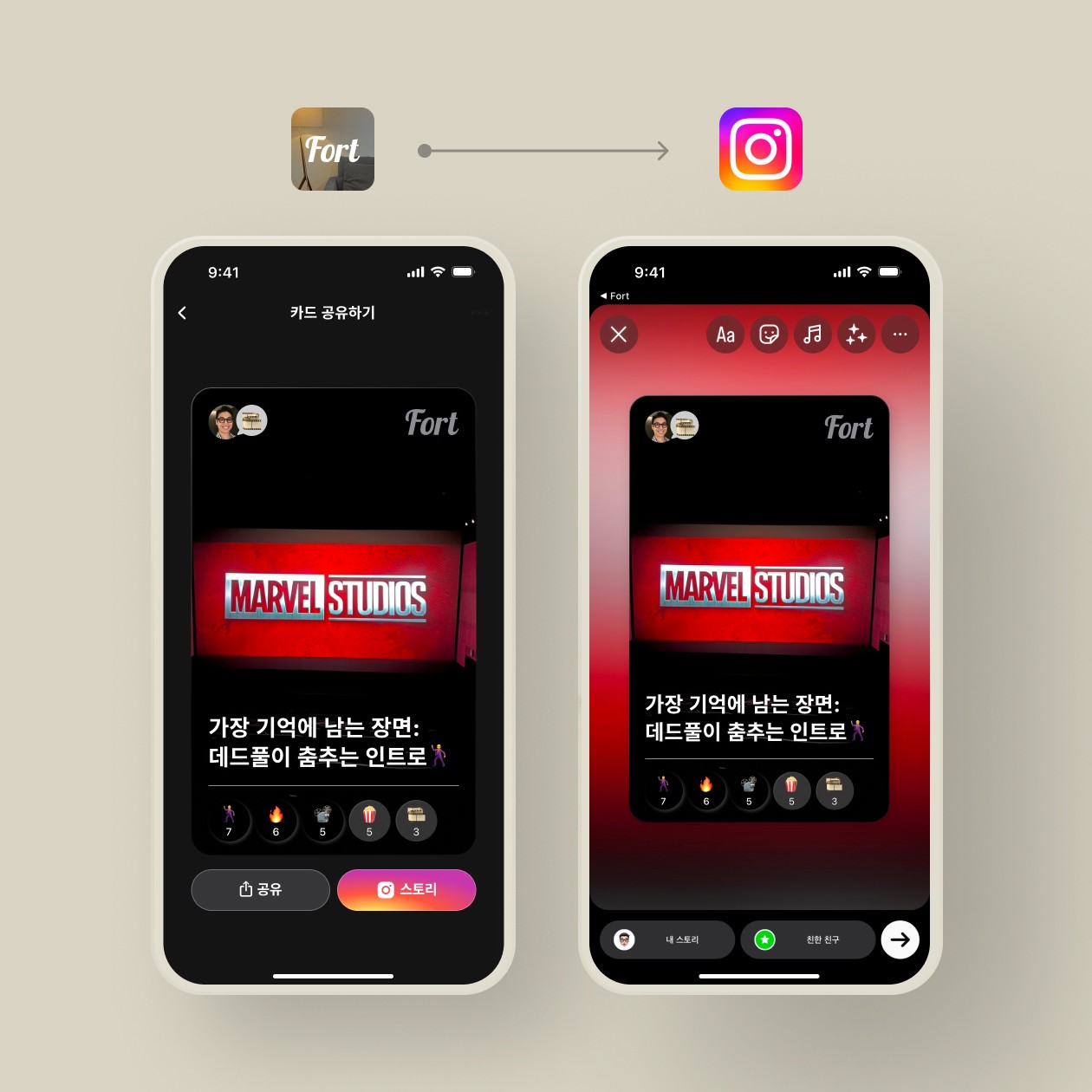 혹시 친구에게 Fort를 설명하기 어려우셨나요? 또는 내 카드가 너무 자랑스러워서 동네방네 소문내고 싶으셨나요? 이게 Instagram에 스토리로 공유해보세요!
