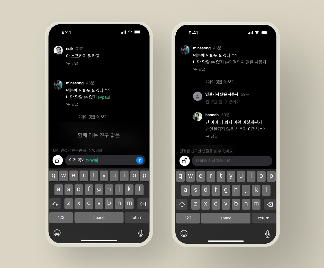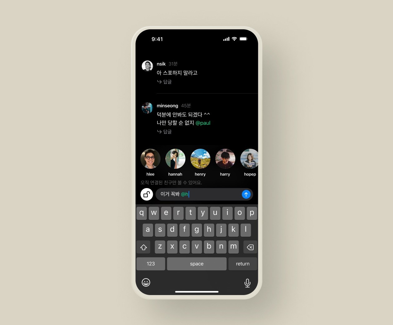 오로지 연결된 친구에게만 보여지는 언급 🔒